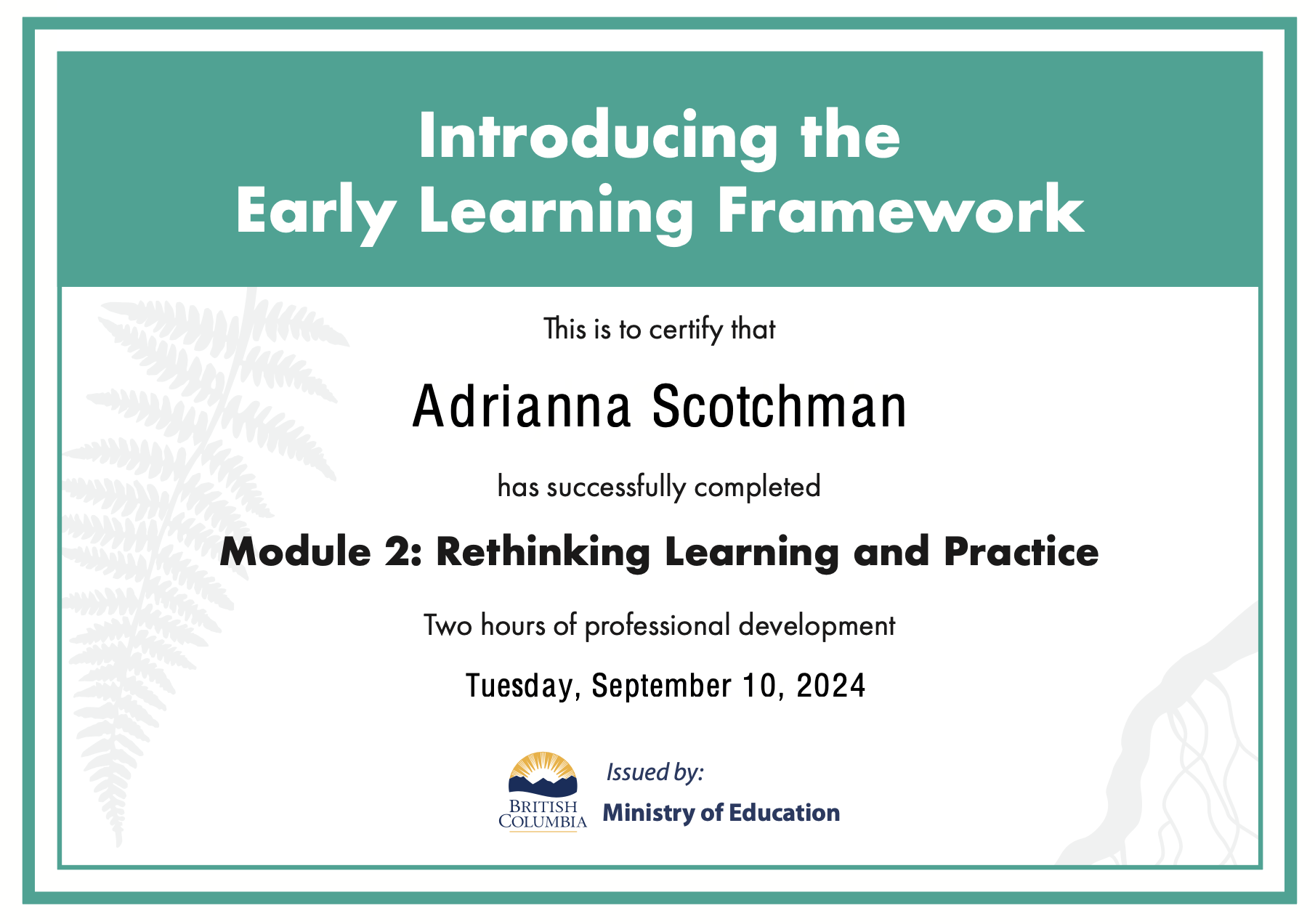 Evidence of Learning p. 1